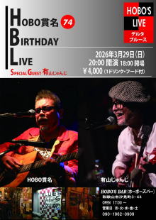 和歌山 「HOBO'S BAR」 『HOBO貫名 74 Birthday Live』 -Special Guest 有山じゅんじ- OPEN/18:00 START/20:00 ¥4.000 (ドリンク・フード付) ![]() |